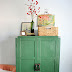 This candle holder is old and made from gorgeous, aged wood. I styled it with pastel colored candles and a few faux flowers. This piece will be fun to change through the seasons with different colored candles and small items placed on the base.
