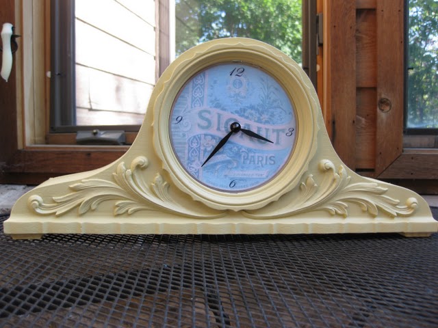 I loved this modge podge mantle clock from The Hand Me Down House: