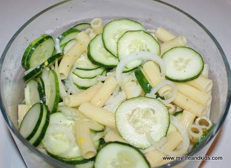 This cucumber pasta salad from My Life and Kids sounds delicious for a hot summer evening.